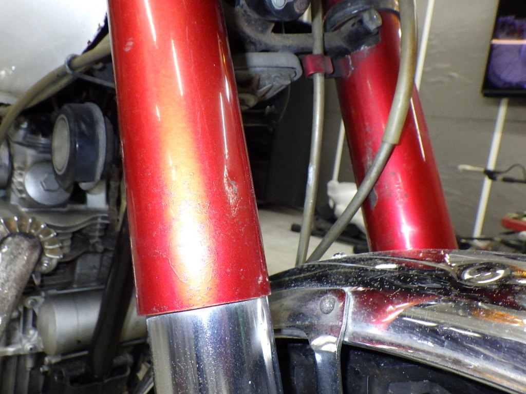 | внешняя часть вилки | царапины, следы коррозии <много>, полирован., перекрашено, неравномерность цвета ЛКП |