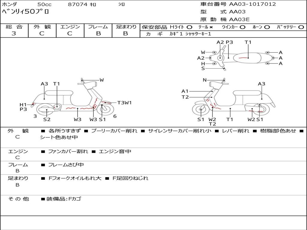 | Номер рамы / VIN | AA03-1017012 |