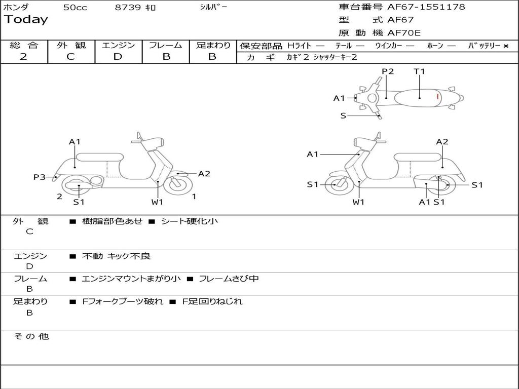 | Номер рамы / VIN | AF67-1551178 |
