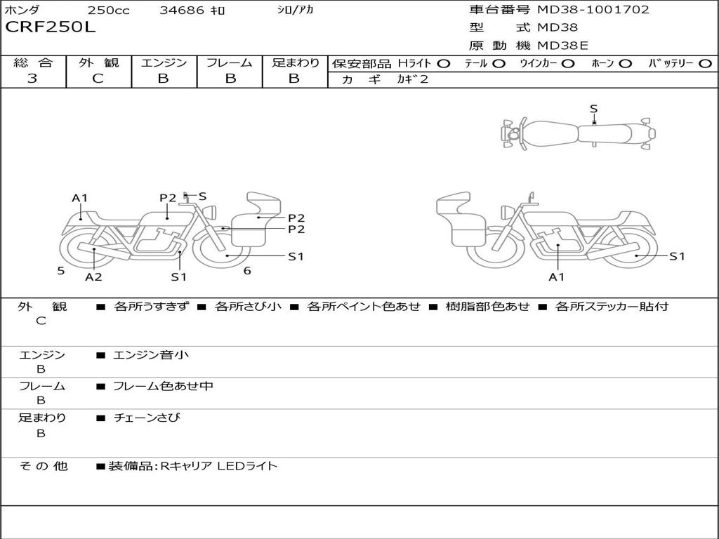 | Номер рамы / VIN | MD38-1001702 |