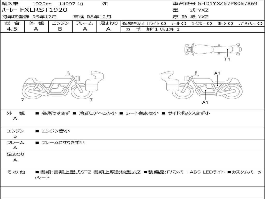 | Номер рамы / VIN | 5HD1YXZ57PS057869 |