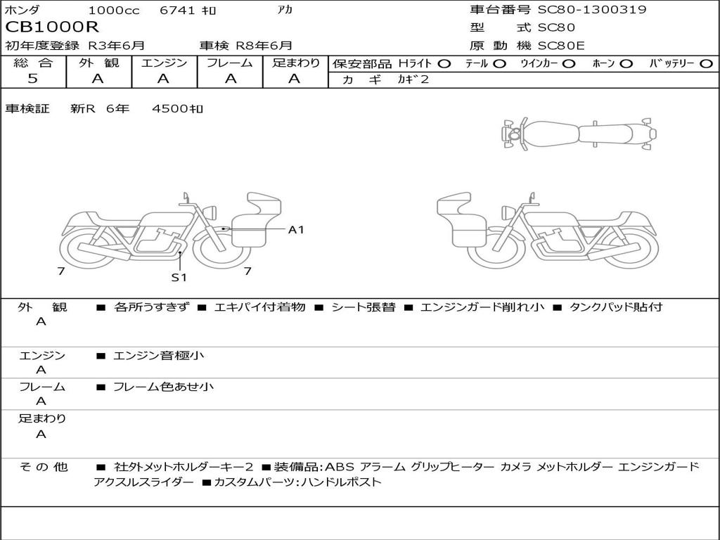 | Номер рамы / VIN | SC80-1300319 |