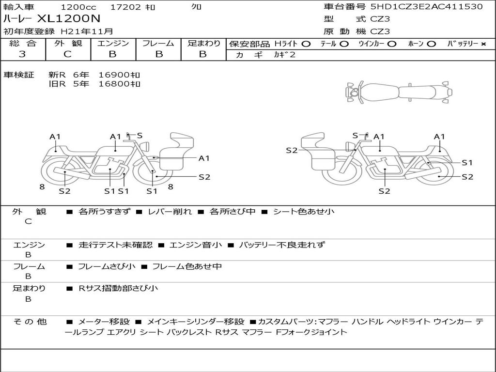 | Номер рамы / VIN | 5HD1CZ3E2AC411530 |