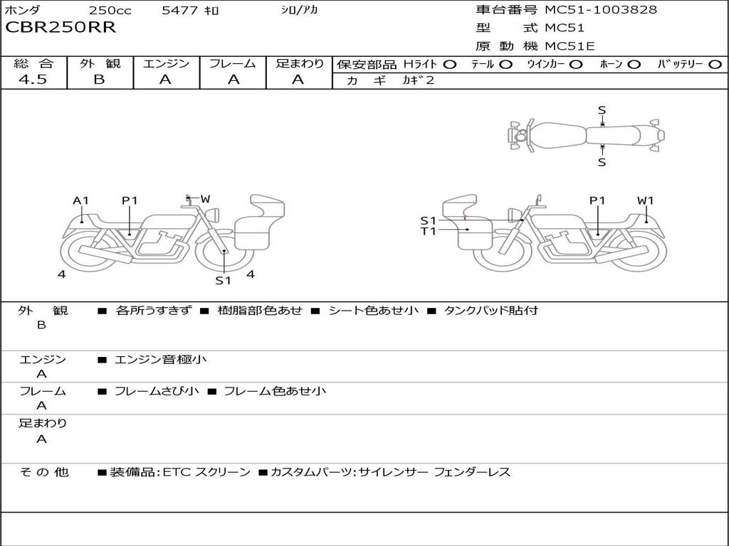 | Номер рамы / VIN | MC51-1003828 |