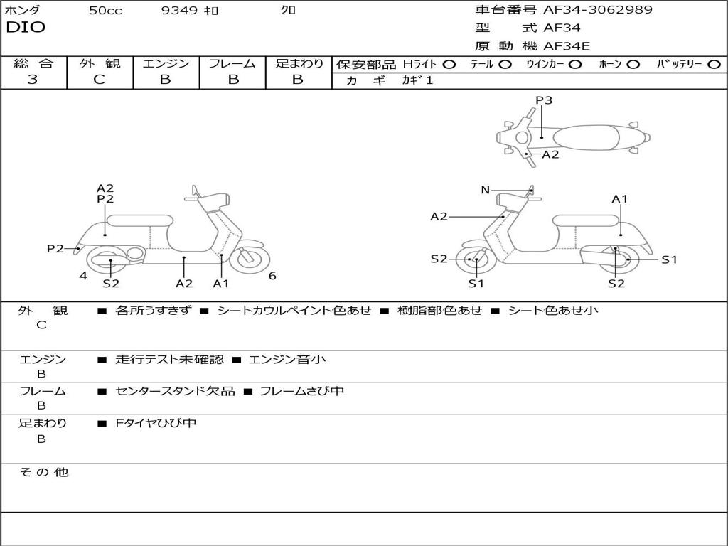 | Номер рамы / VIN | AF34-3062989 |