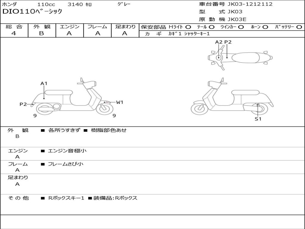 | Номер рамы / VIN | JK03-1212112 |