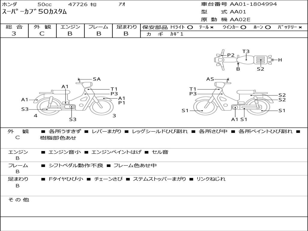 | Номер рамы / VIN | AA01-1804994 |