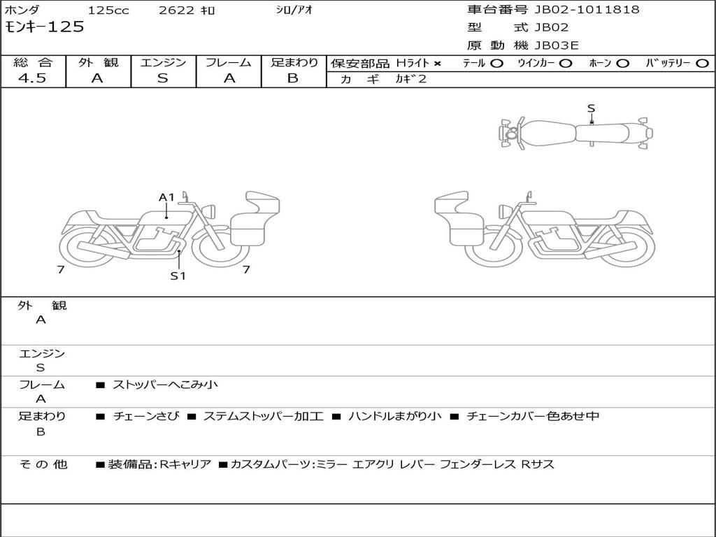 | Номер рамы / VIN | JB02-1011818 |