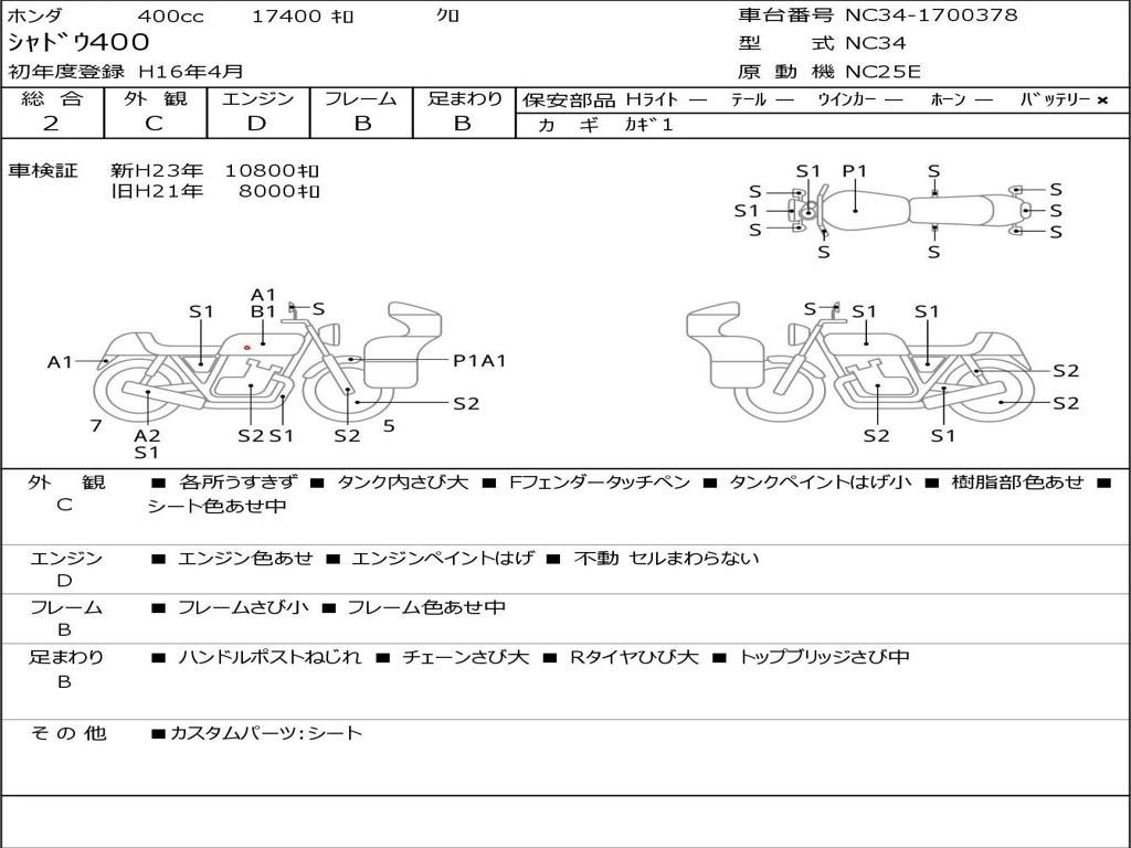 | Номер рамы / VIN | NC34-1700378 |