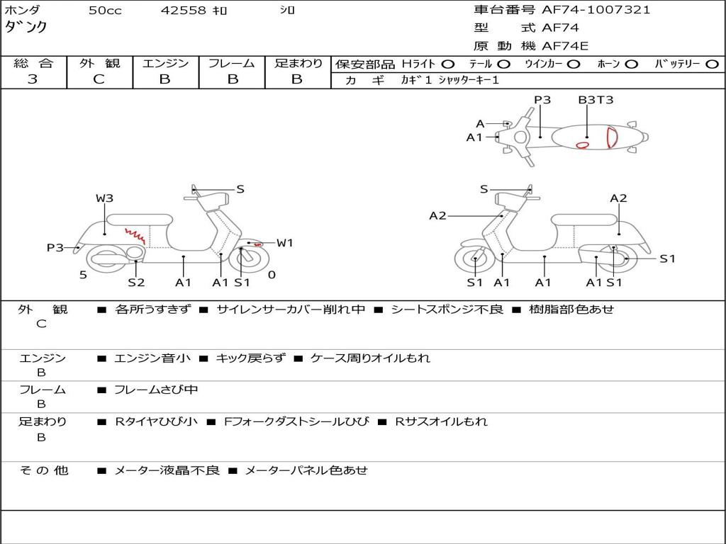 | Номер рамы / VIN | AF74-1007321 |