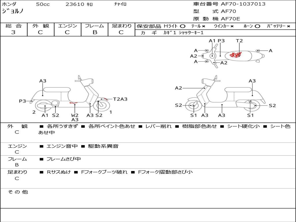 | Номер рамы / VIN | AF70-1037013 |