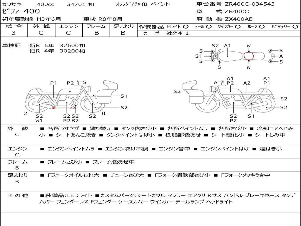 | Номер рамы / VIN | ZR400C-034543 |