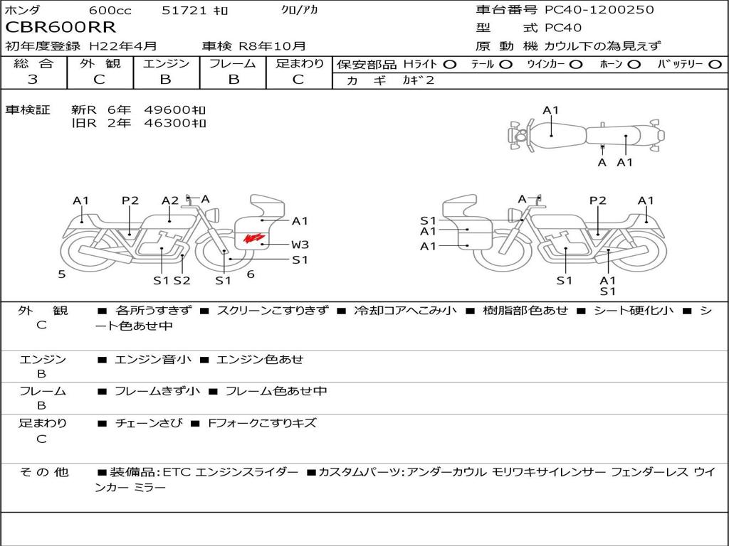 | Номер рамы / VIN | PC40-1200250 |
