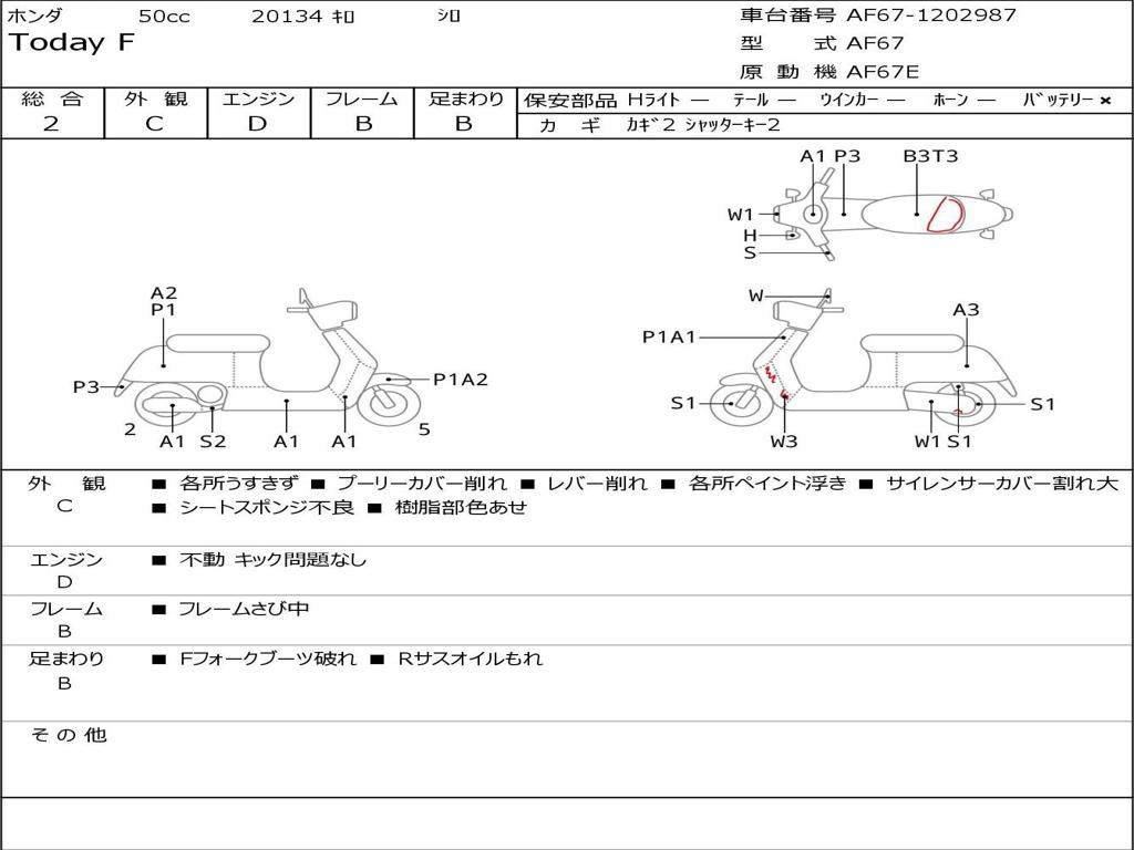 | Номер рамы / VIN | AF67-1202987 |