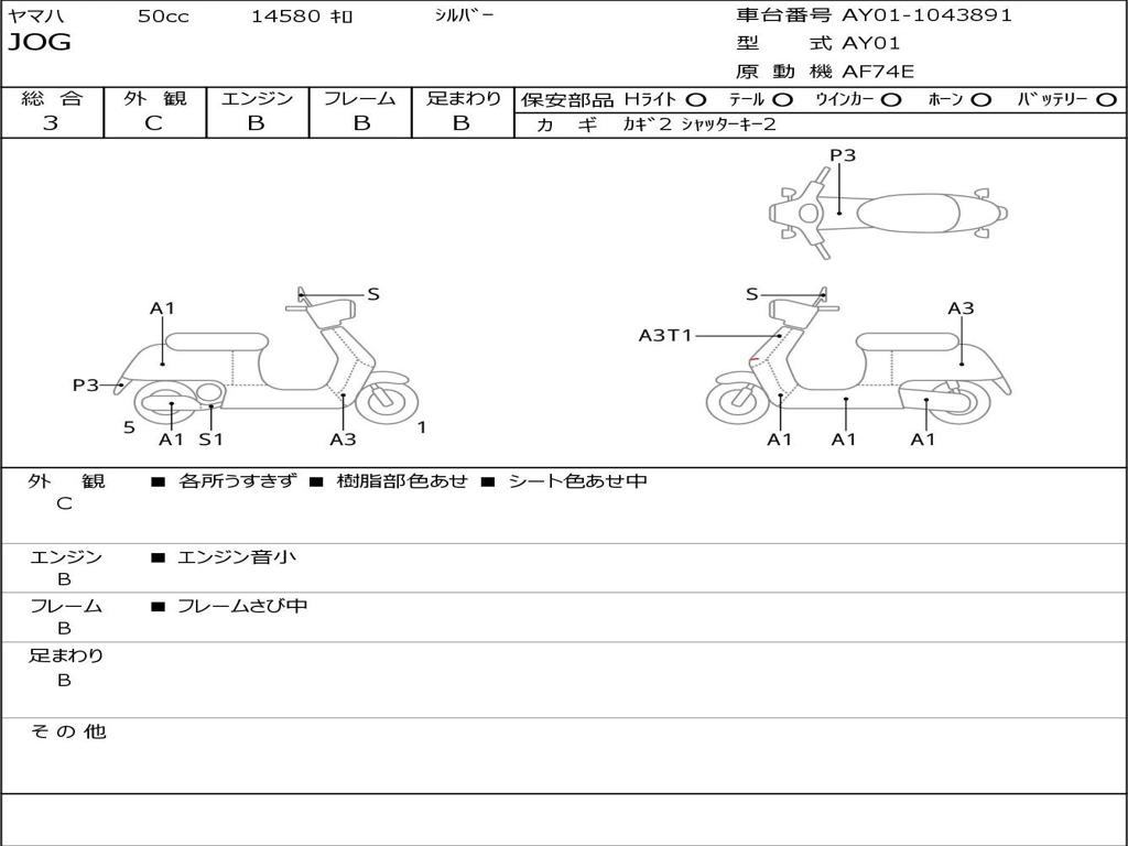 | Номер рамы / VIN | AY01-1043891 |