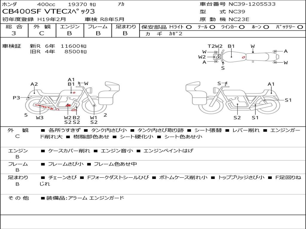 | Номер рамы / VIN | NC39-1205533 |