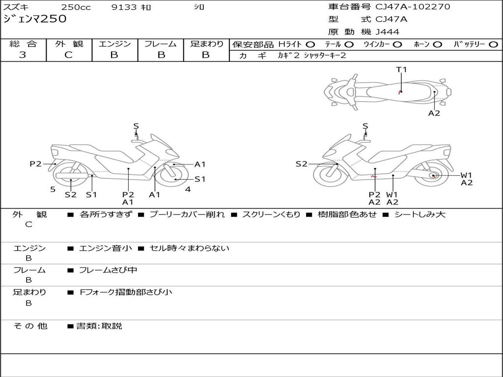 | Номер рамы / VIN | CJ47A-102270 |