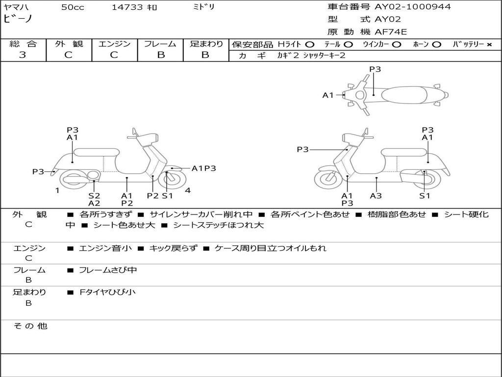| Номер рамы / VIN | AY02-1000944 |