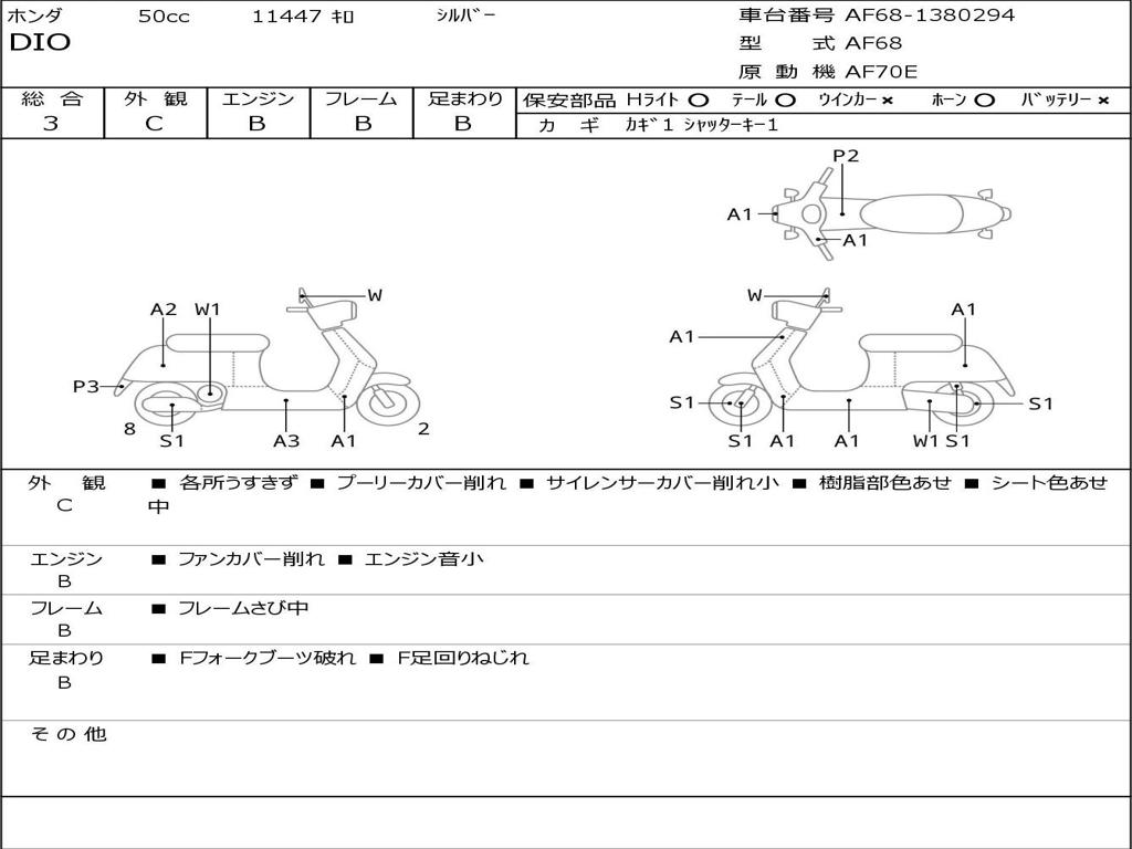 | Номер рамы / VIN | AF68-1380294 |