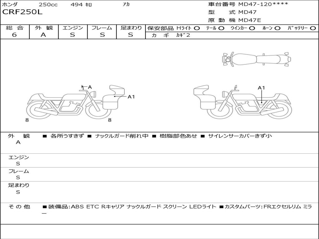 | Номер рамы / VIN | MD47-1201144 |