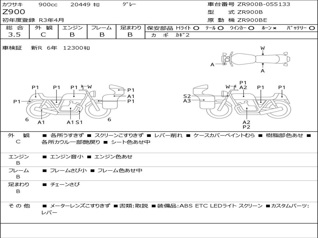 | Номер рамы / VIN | ZR900B-055133 |
