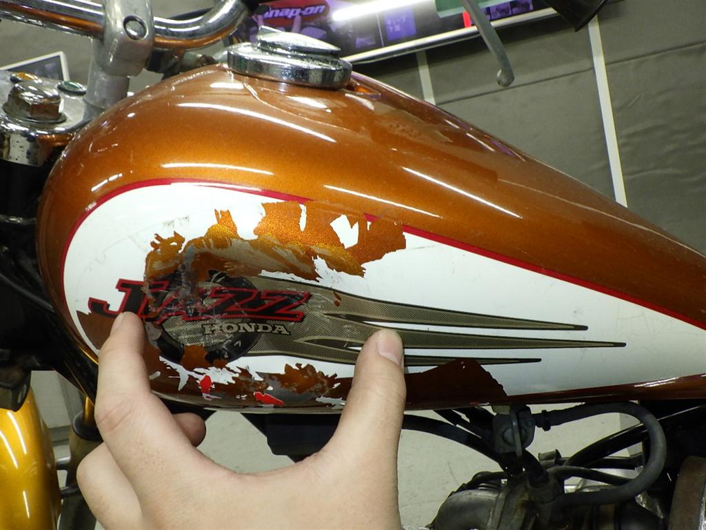 | бензобак | вмятина <много>, царапины <много>, износ(потертость) краски <много> |