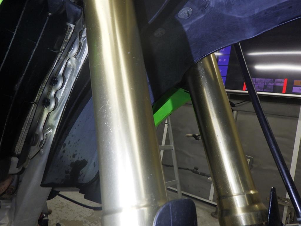 | внешняя часть вилки | царапины <много>, потек масла <много> |