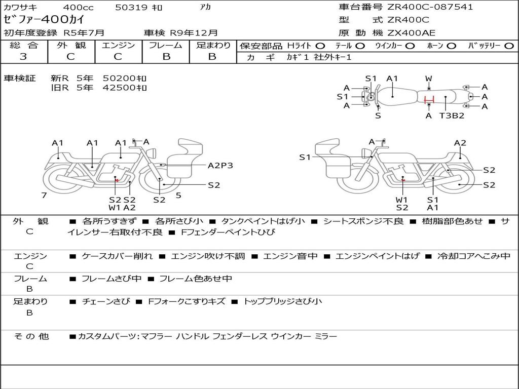 | Номер рамы / VIN | ZR400C-087541 |