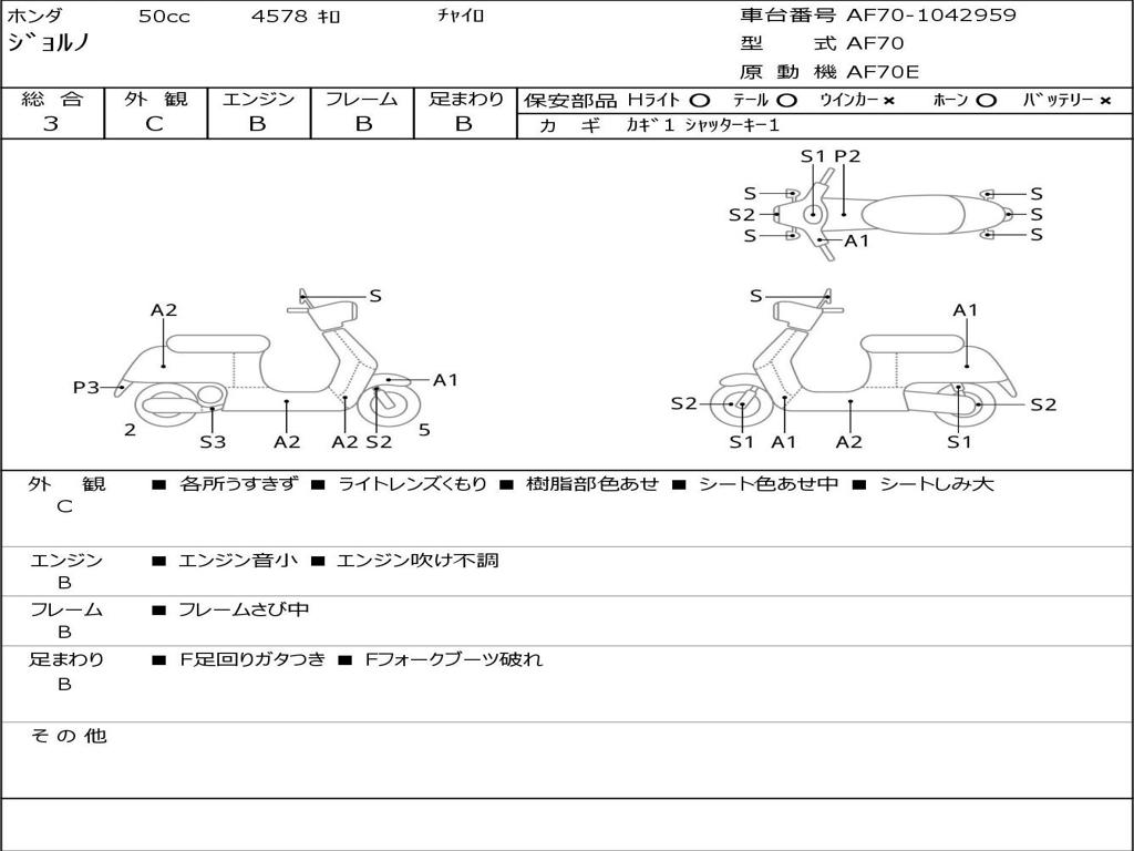 | Номер рамы / VIN | AF70-1042959 |