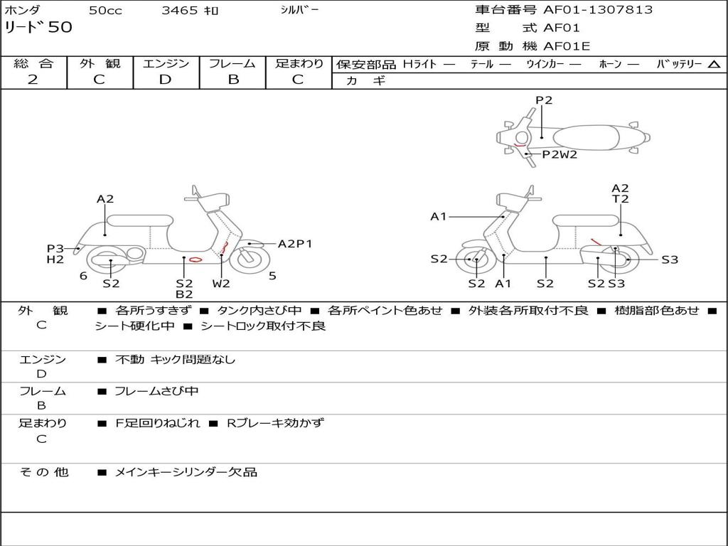| Номер рамы / VIN | AF01-1307813 |