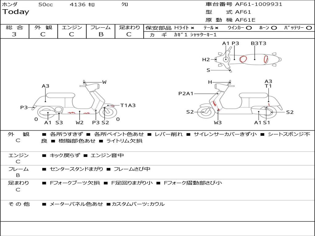 | Номер рамы / VIN | AF61-1009931 |