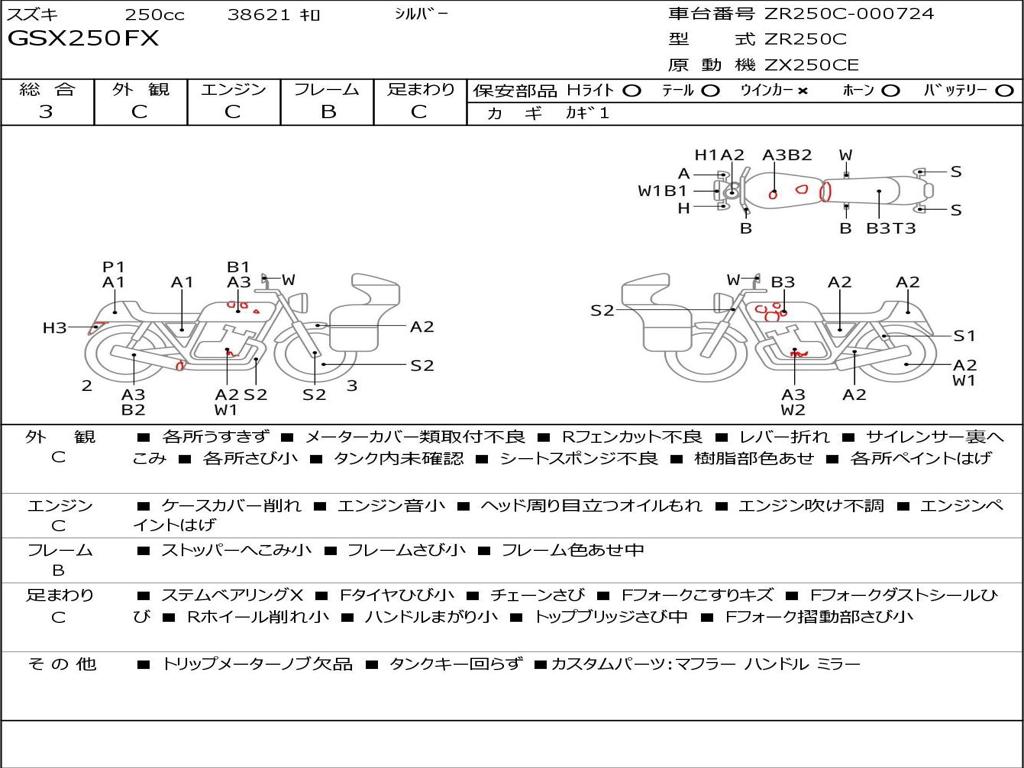 | Номер рамы / VIN | ZR250C-000724 |