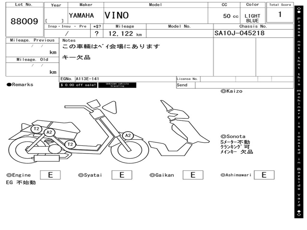 | Номер рамы / VIN | SA10J-045218 |