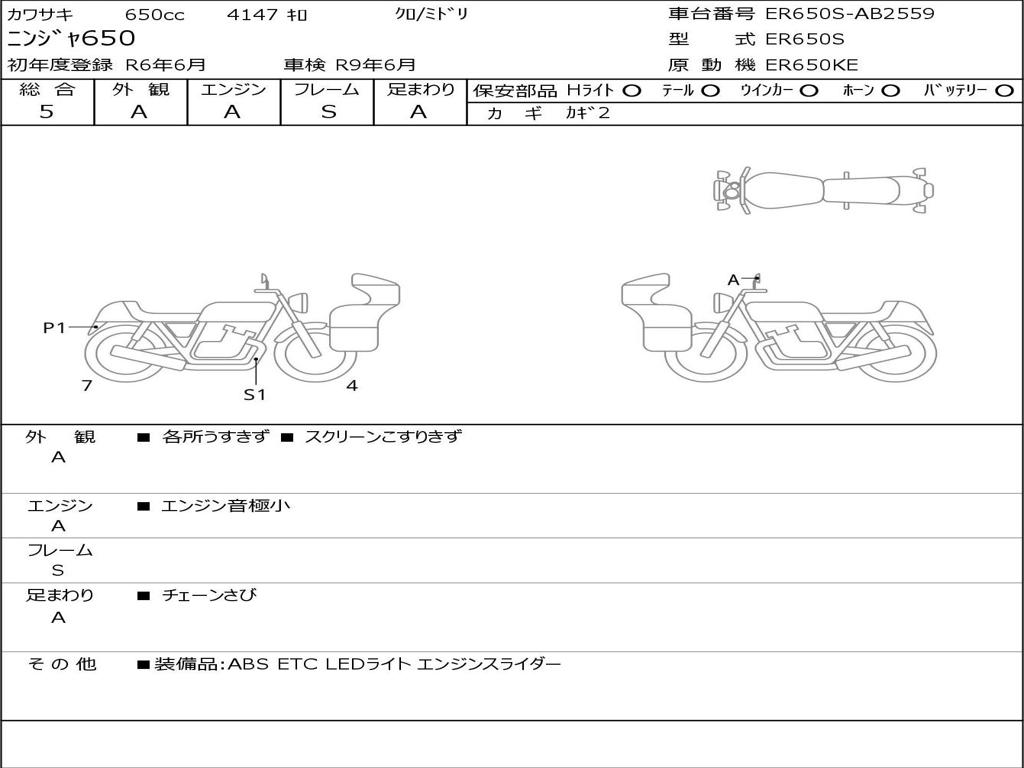| Номер рамы / VIN | ER650S-AB2559 |