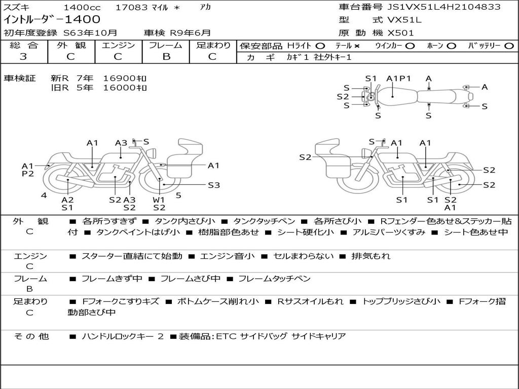 | Номер рамы / VIN | JS1VX51L4H2104833 |