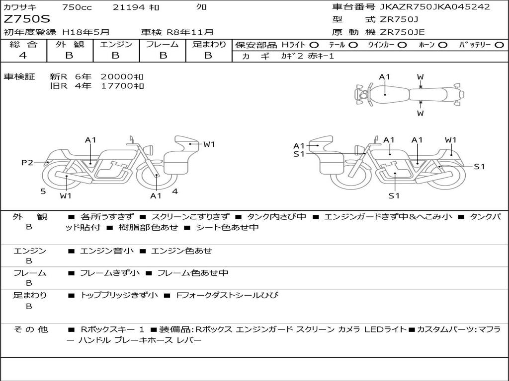 | Номер рамы / VIN | JKAZR750JKA045242 |