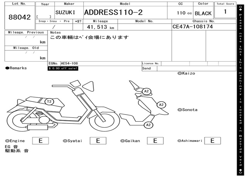 | Номер рамы / VIN | CE47A-108174 |