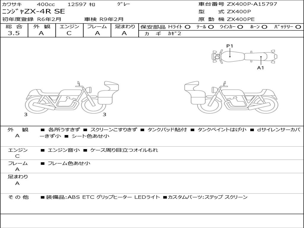| Номер рамы / VIN | ZX400P-A15797 |