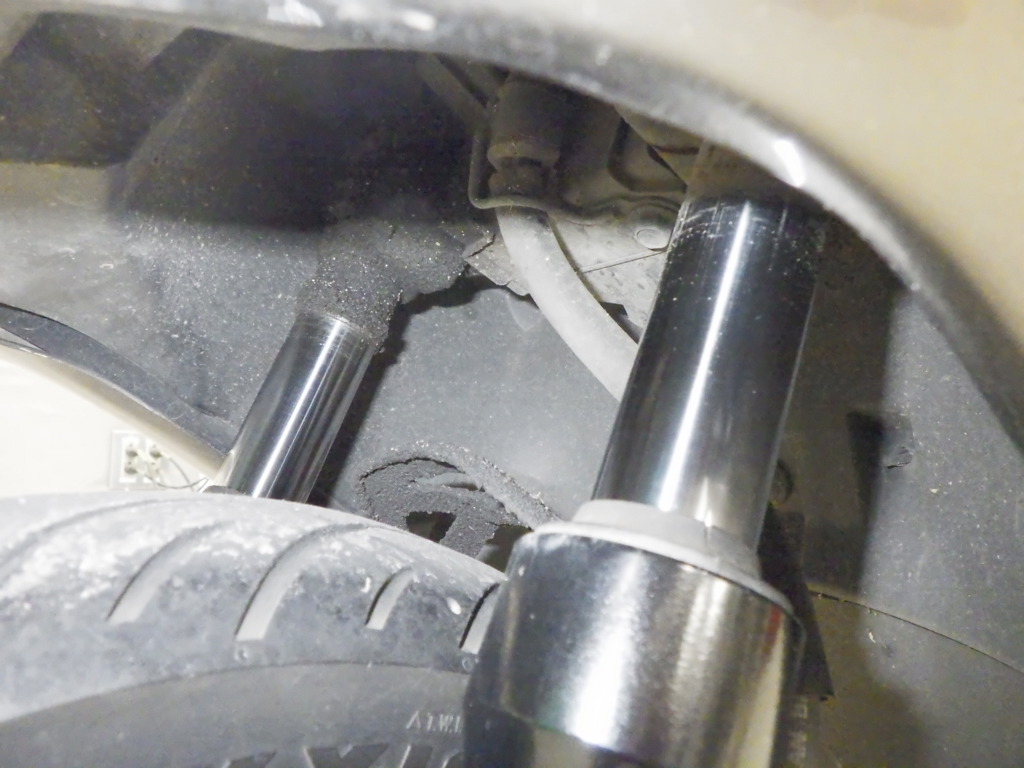 | внешняя часть вилки | царапины, потек масла <много> |