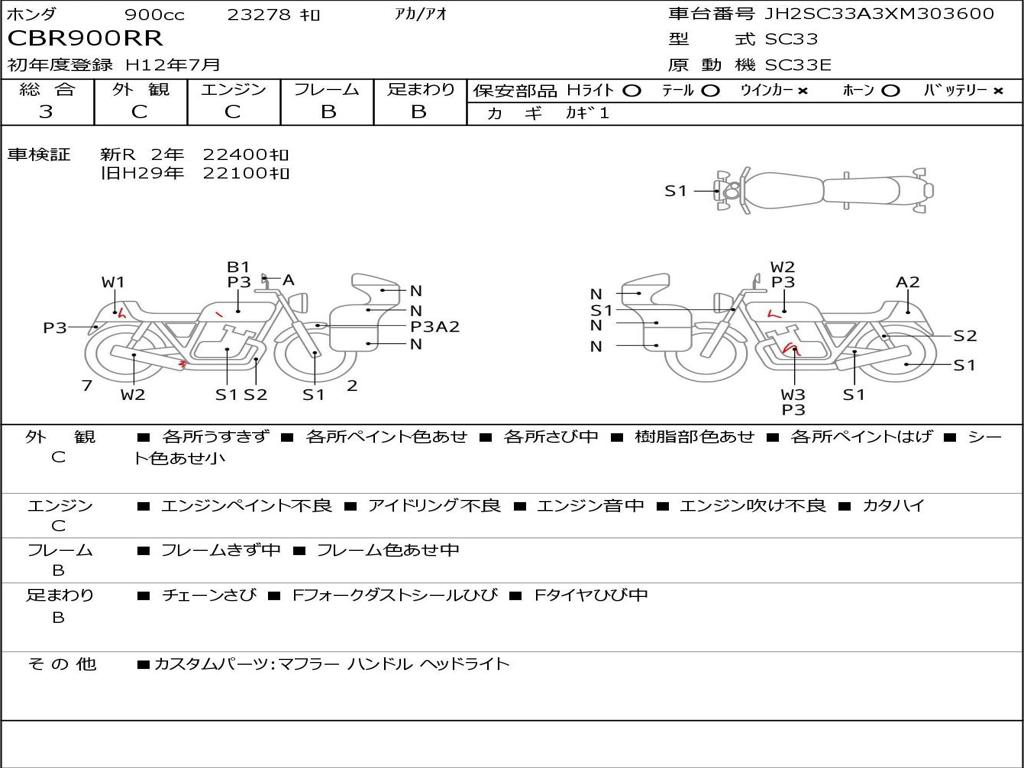 | Номер рамы / VIN | JH2SC33A3XM303600 |