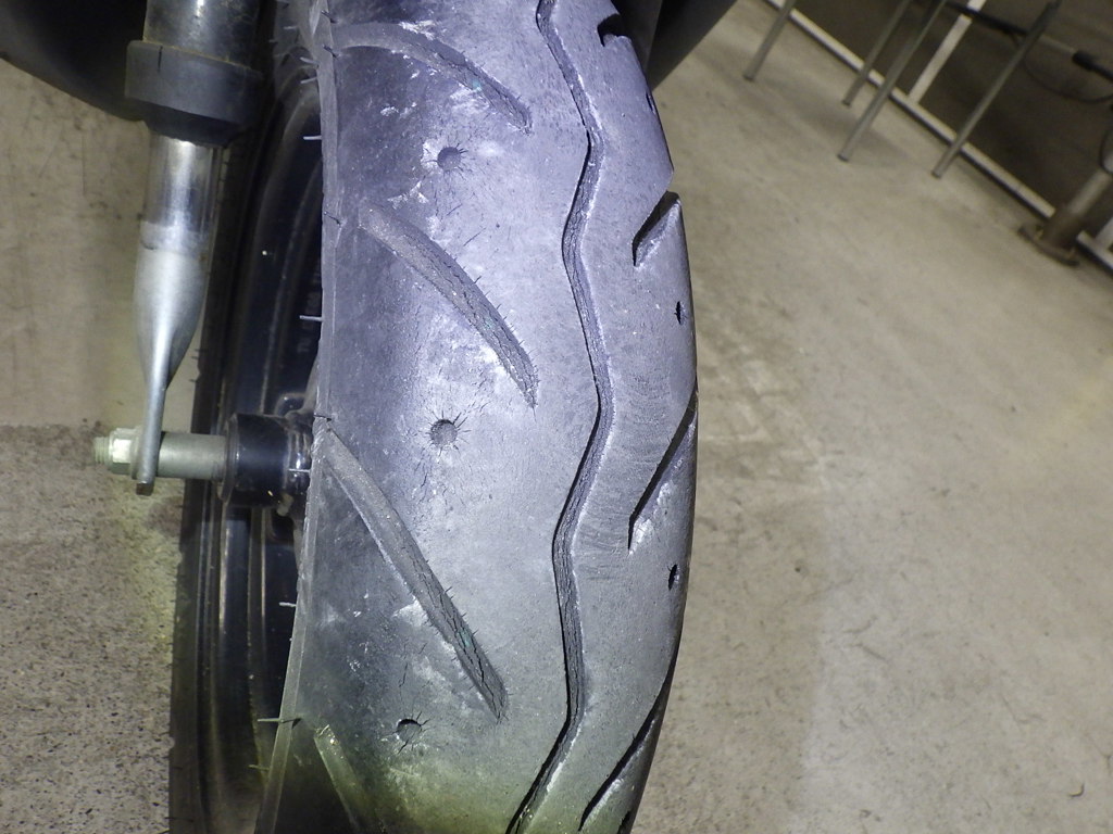 | шина | трещины, требует замены |