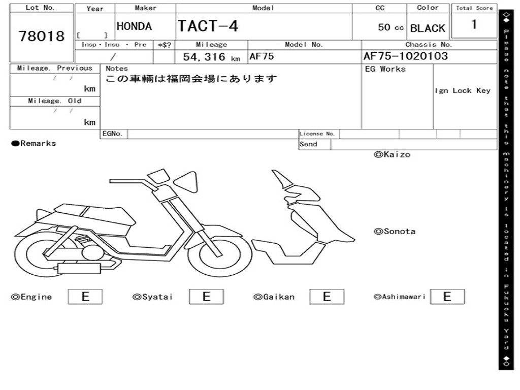 | Номер рамы / VIN | AF75-1020103 |