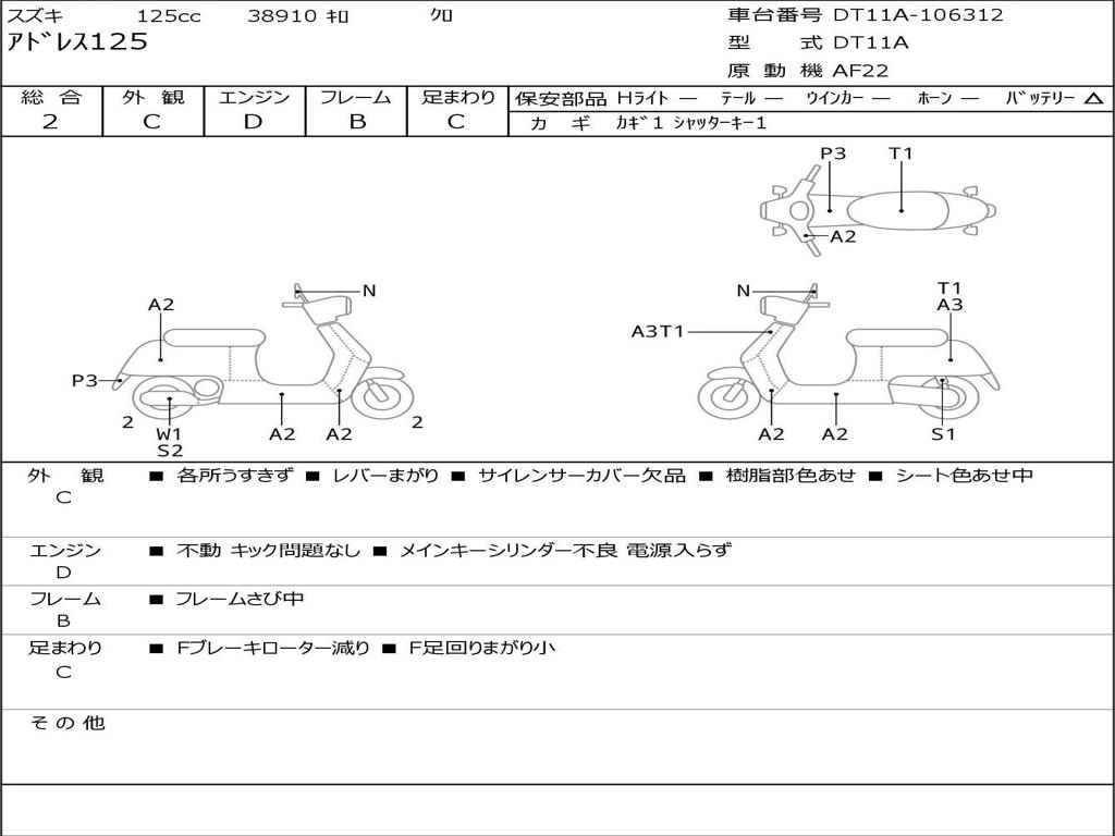 | Номер рамы / VIN | DT11A-106312 |