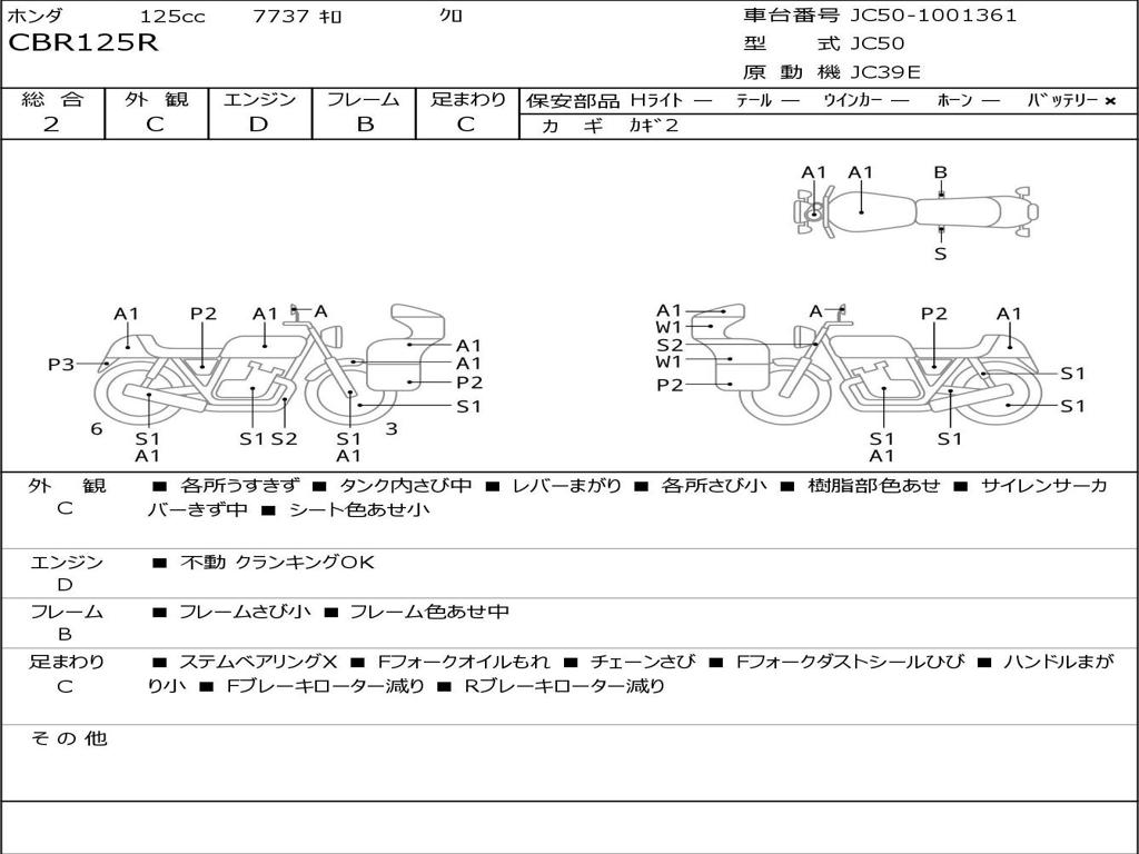 | Номер рамы / VIN | JC50-1001361 |