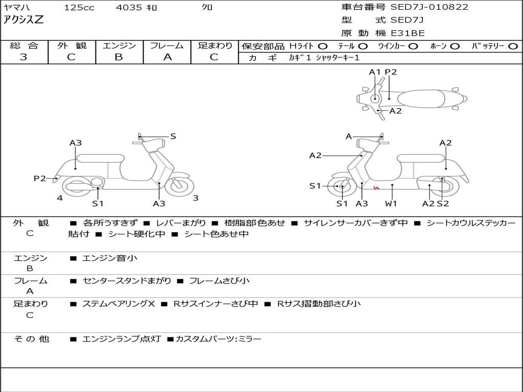 | Номер рамы / VIN | SED7J-010822 |