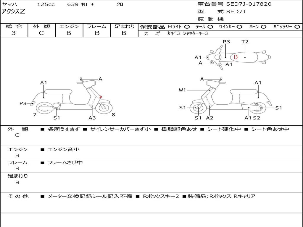 | Номер рамы / VIN | SED7J-017820 |