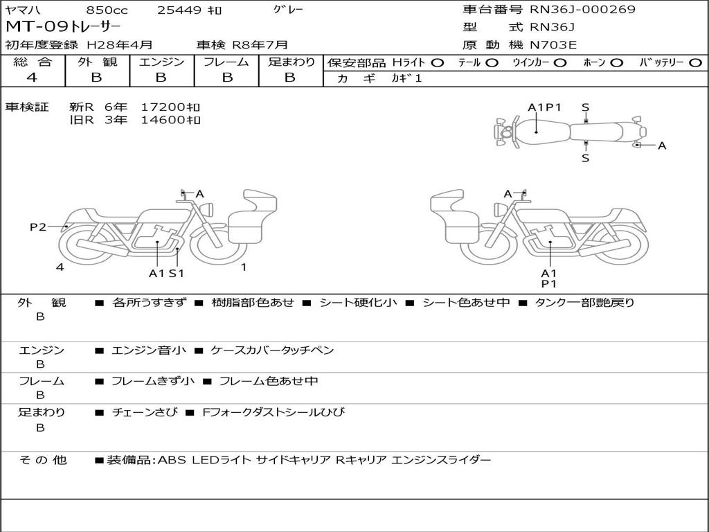 | Номер рамы / VIN | RN36J-000269 |