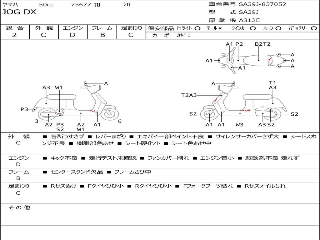 | Номер рамы / VIN | SA39J-837052 |