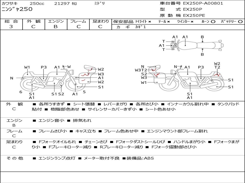 | Номер рамы / VIN | EX250P-A00801 |
