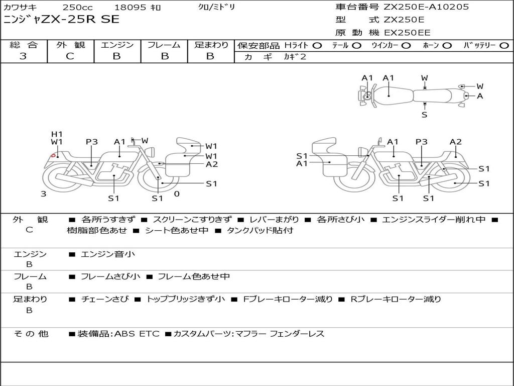 | Номер рамы / VIN | ZX250E-A10205 |